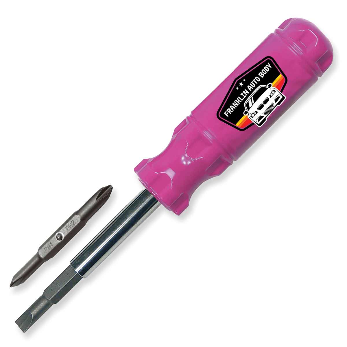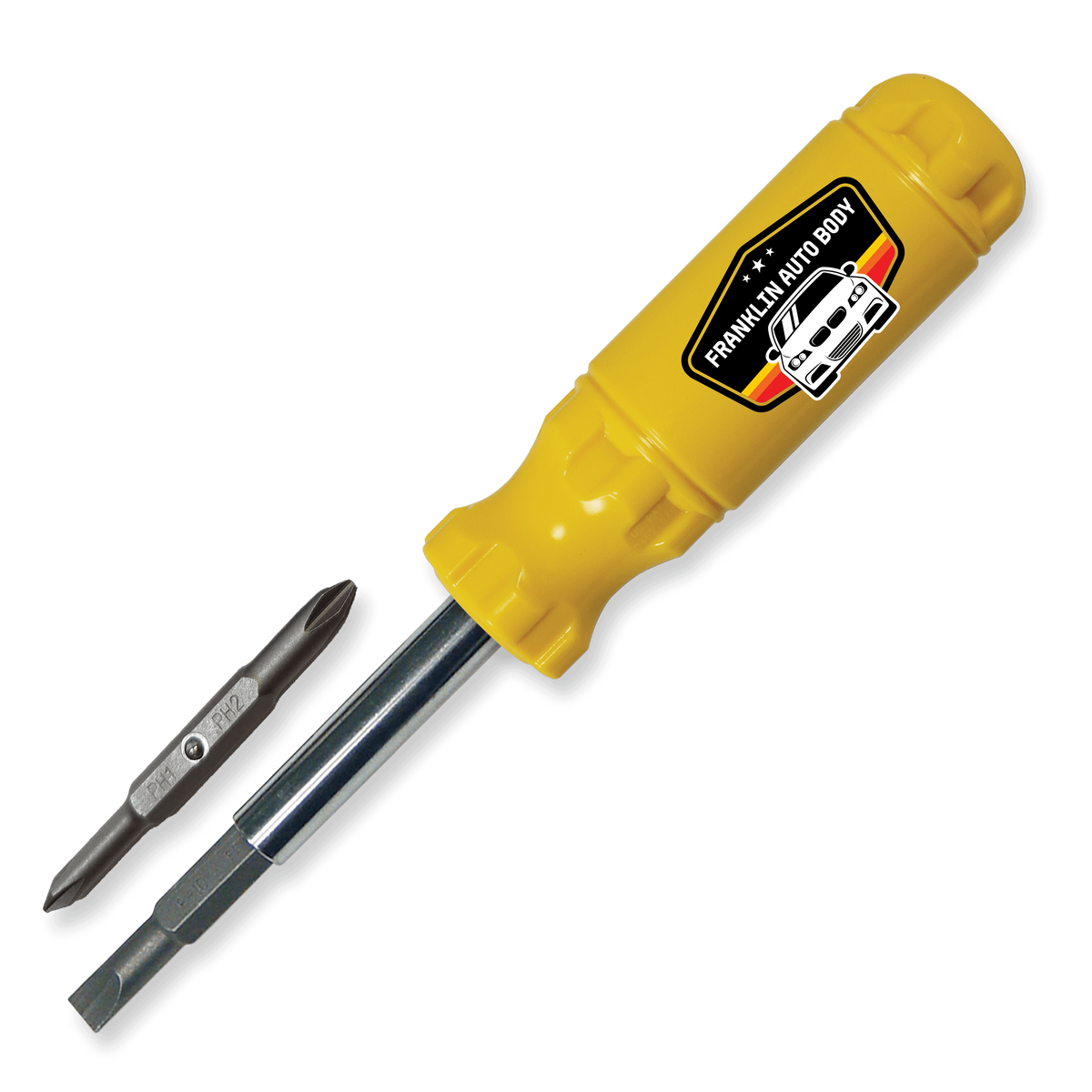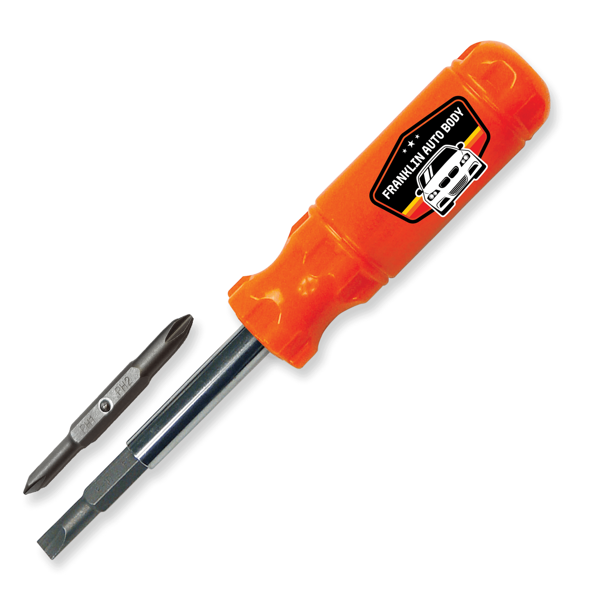 Screwdrivers are appreciated and used by everyone! When was the last time you threw away a tool? Keep your message in your customer's hands with Fey Promo Tools! Imprint wraps around the entire handle allowing almost 6 square inches of advertising space.