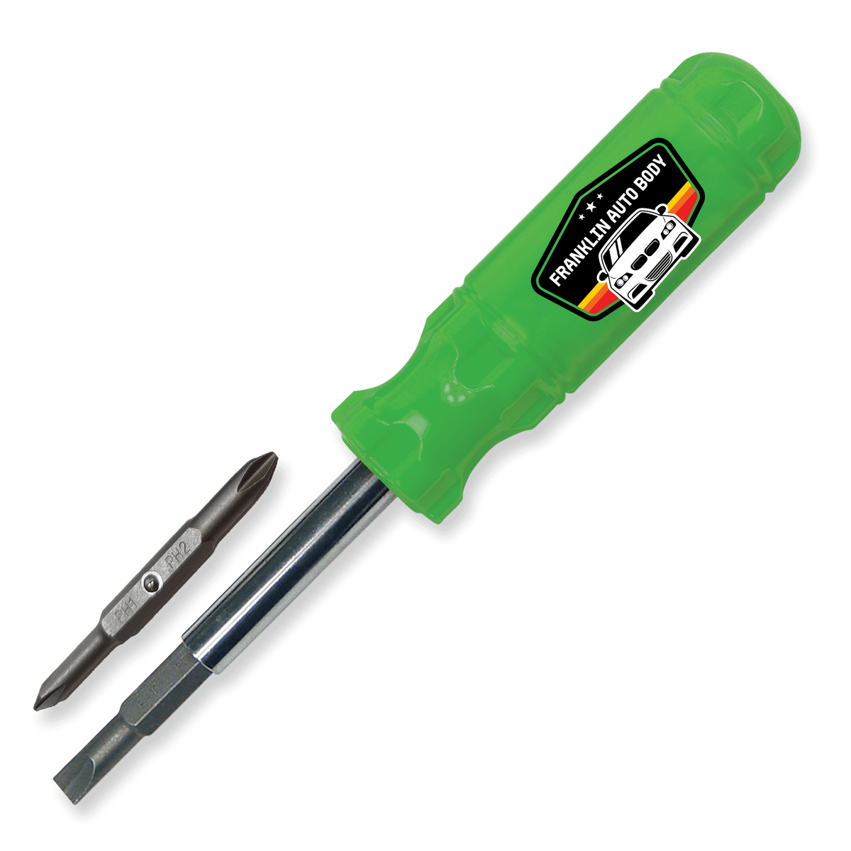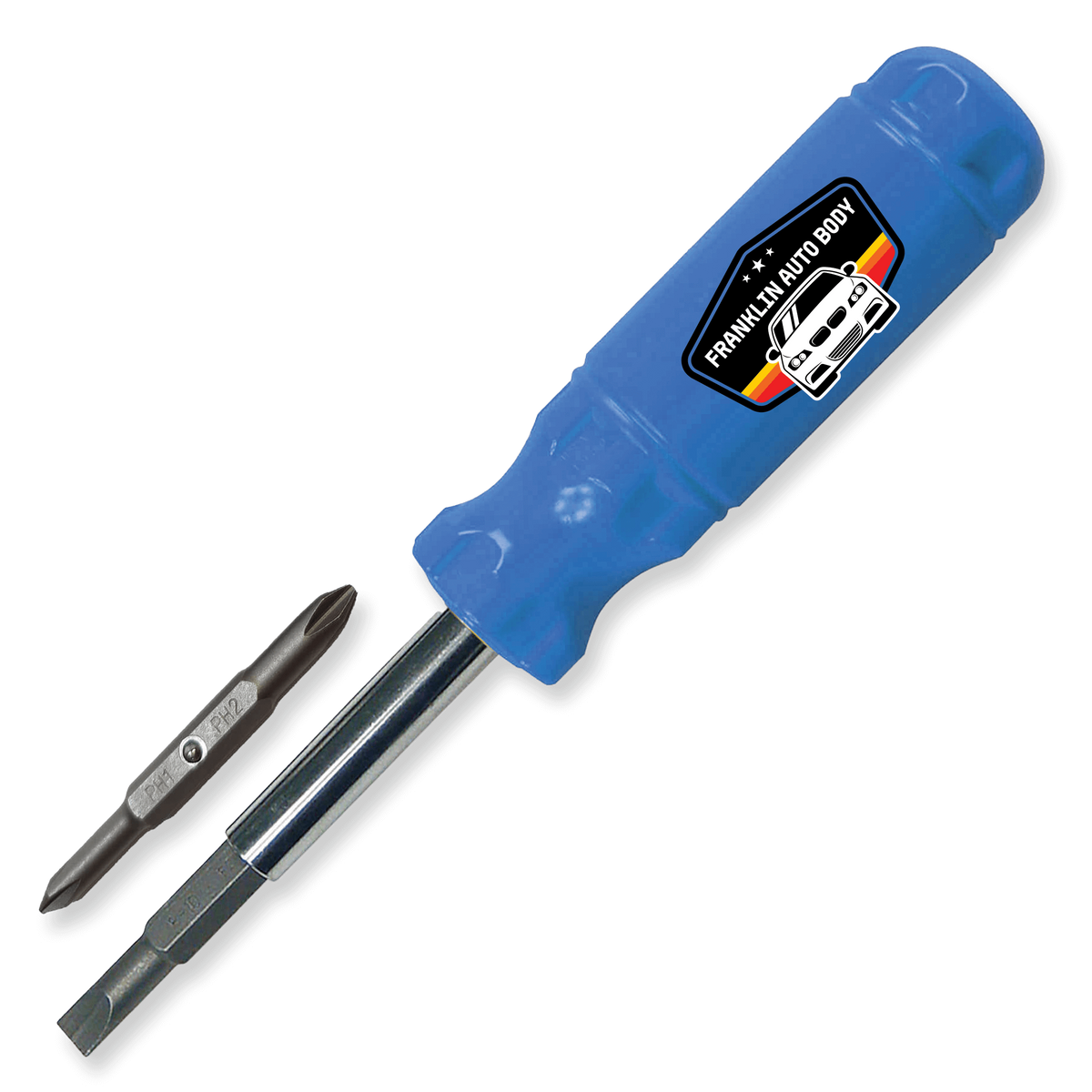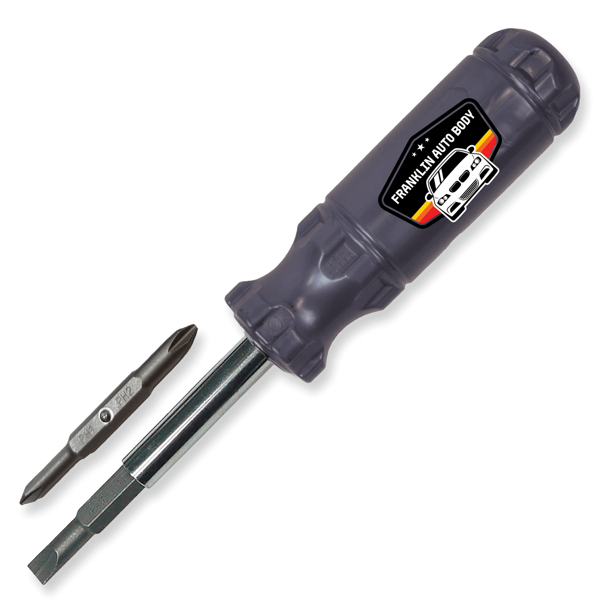 Screwdrivers are appreciated and used by everyone! When was the last time you threw away a tool? Keep your message in your customer's hands with Fey Promo Tools! Imprint wraps around the entire handle allowing almost 6 square inches of advertising space.