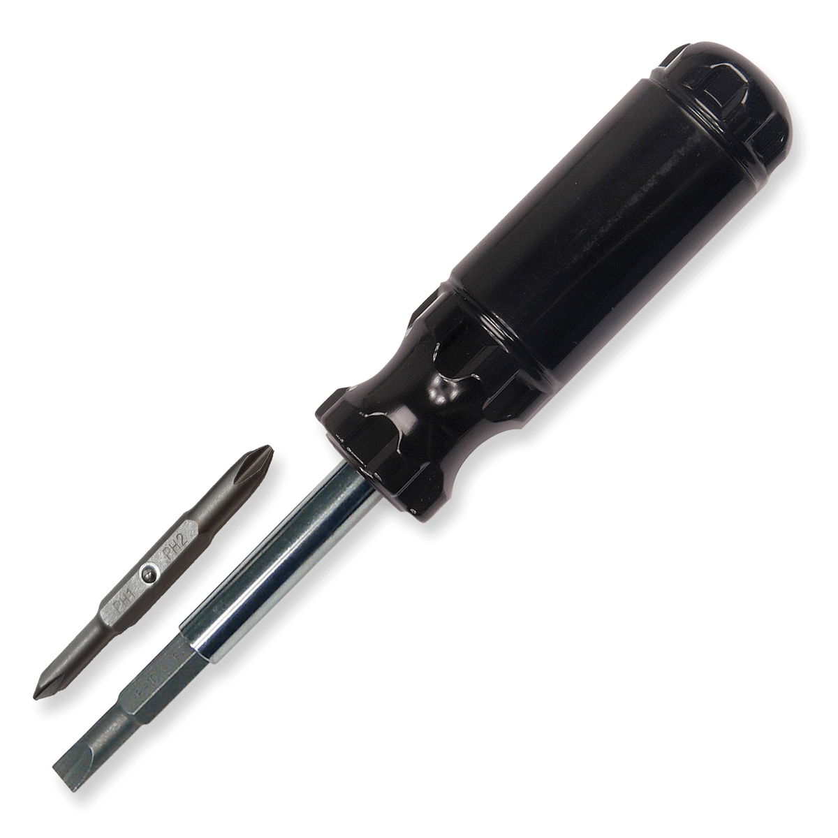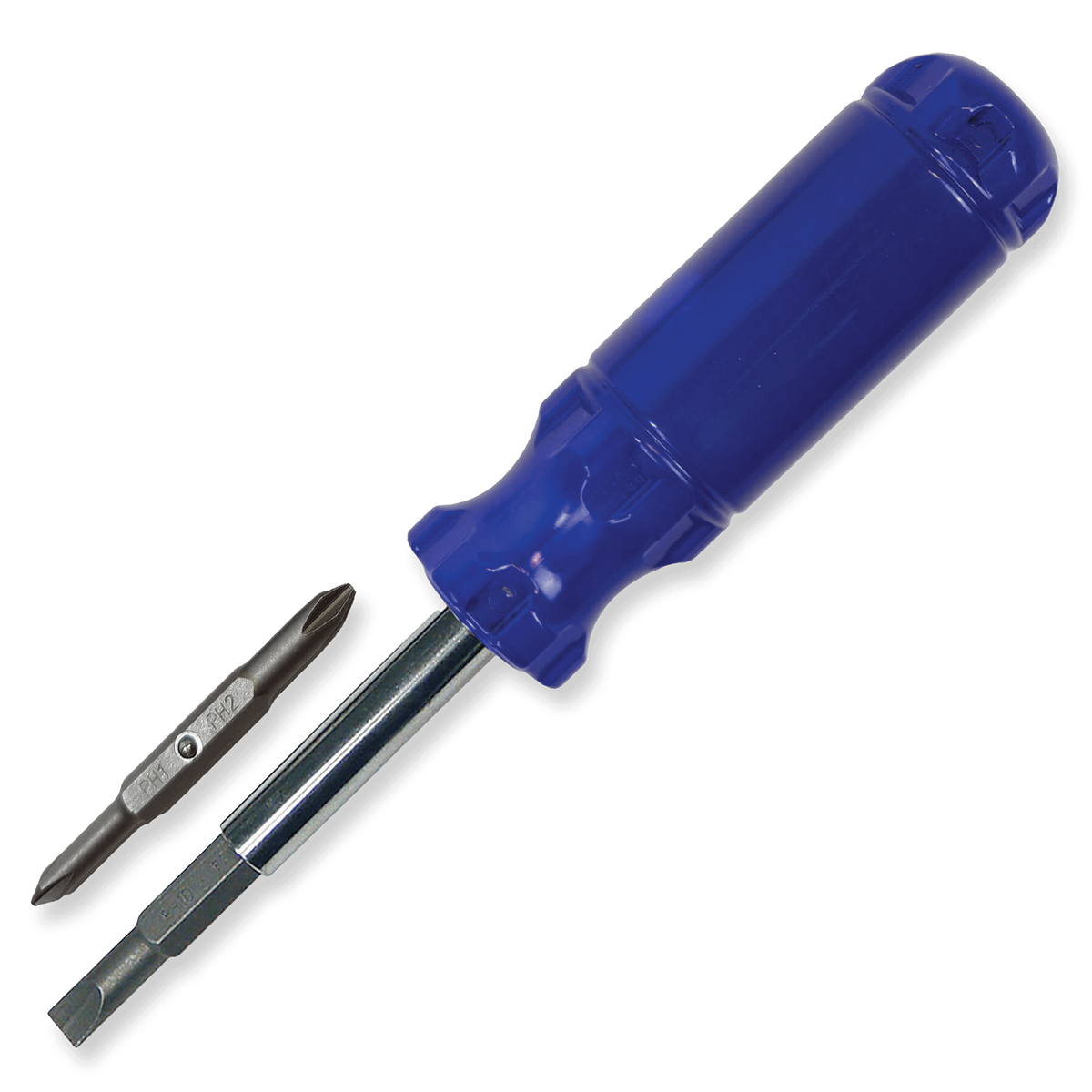 • Includes 3/16" Standard, 1/4" Standard, #1 Phillips, #2 Phillips, 1/4" Hex Driver, and 5/16" Hex Driver.