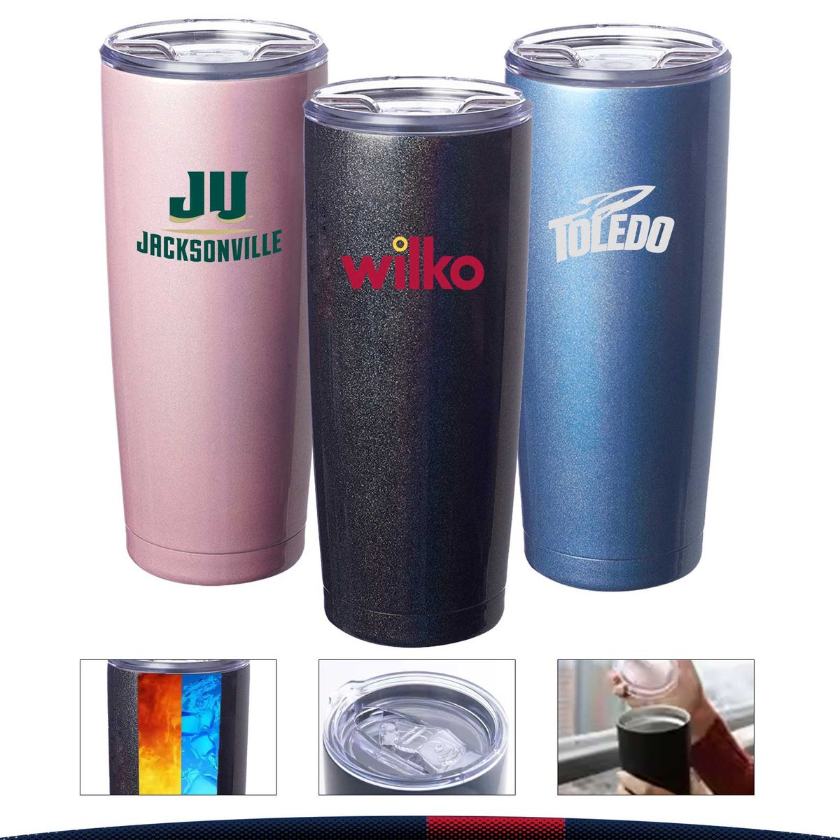 The 20 oz. stainless steel tumbler is a perfect blend of style and functionality. Equipped with a clear plastic lid, it is convenient for on-the-go use, preventing spills whether you're commuting to work, hitting the gym, or going on a road trip. Its double wall vacuum insulated design can keep your drinks hot for up to 4 hours and cold for up to 6 hours. Rush 3 days available with rush charge upon request. Imprint drinkware only can be hand washed except when laser engraved which is dishwasher safe.